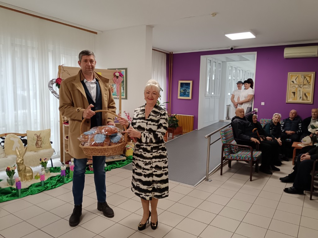 Na uskrsni petak posjetio nas je zamjenik župana Paška Rakića, gospodin Nenad Tisaj. U ime Županije darovao je korisnicima Doma uskrsne pogače i poželio Sretan Uskrs svima. Pohvalio je rad Doma, ravnateljicu i djelatnike. Ugodno se iznenadio uskrsnim uređenjem i ugođajem u Domu. Popričao je s nama, nasmijali smo se i čestitali jedni drugima blagdane.